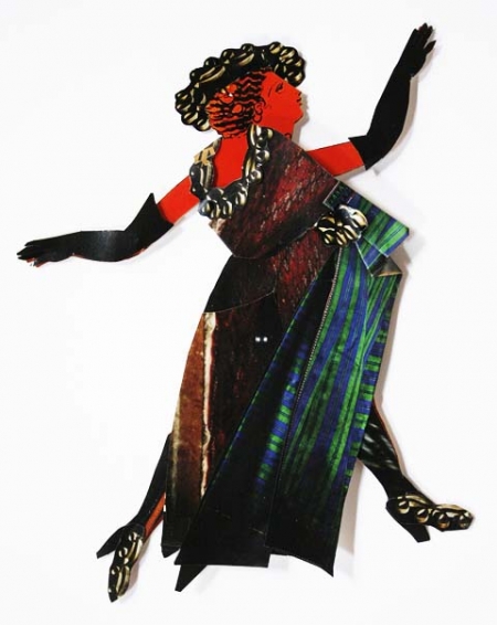 I am a graphic designer, toy maker, and self-proclaimed “jazzknitter”. I’m no fashionista but have always loved buttons and printed fabrics and am appreciative of (and take great pleasure in) the wonderful world of fashion. I have a new series of a dozen different paper dolls. Some are classical Victorian, sure to please miniaturists and scrap book lovers alike, while others draw on earlier periods of art and fashion history. I get inspiration for color and pattern from the world around me. One bit of useful color that tends to catch my eye, is the print on the magazine and catalog covers that constantly pile up around my house. A particularly vibrant cover called out to me this summer and even announced what I should do with it, “RIPPED!”. It was bright yellow with huge pink letters and a shiny black New York Times Magazine logo. Without much ado, it became fodder for a first paper doll fashion. What would happen if I made clothing from every magazine cover The New York Times dished out over the course of a year? What fun! I could be like a contestant on Project Runway, scissors poised, ready to take on my next design challenge!